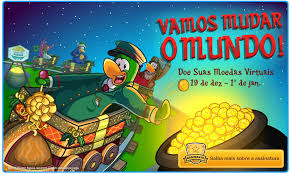 Este mês o club penguin tem um novo desafio que é nem mais nem menos que doar moedas para mudar o mundo. Ao doares moedas tu e os outros pinguins começam a encher este depósito e à medida que ele enche podes receber coisas.